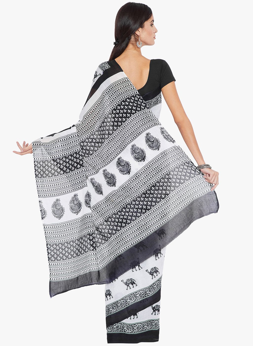Black & White Hand Block Print Handcrafted Cotton Saree